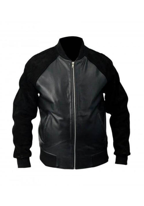 This midweight jacket works equally well over tees or button-downs—ideal for casual outings, date nights, or film-inspired fashion. The rich black tone and suede contrast deliver a standout silhouette.